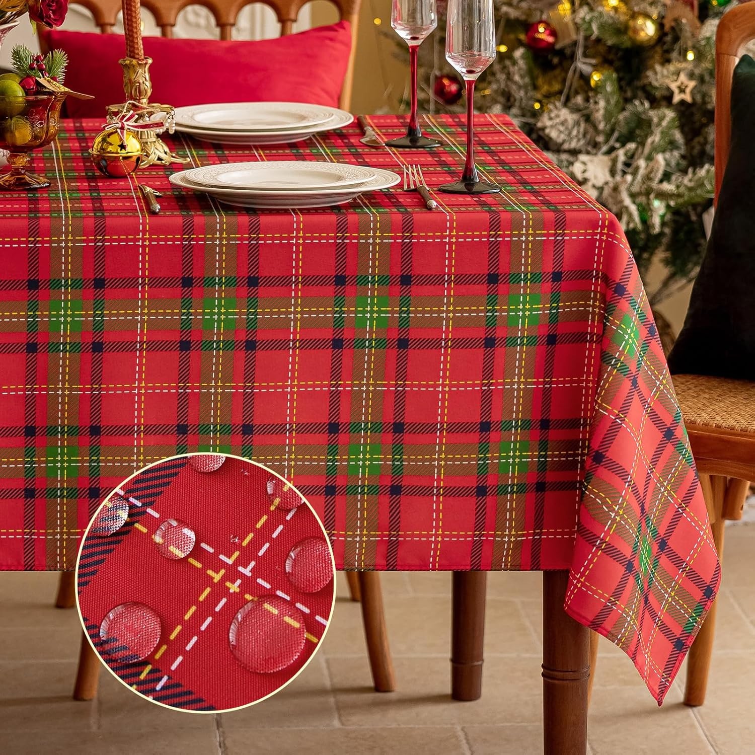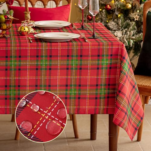 Softalker Christmas Tablecloth Square 140x140 cm Red Tartan Xmas Table Cloth Wi