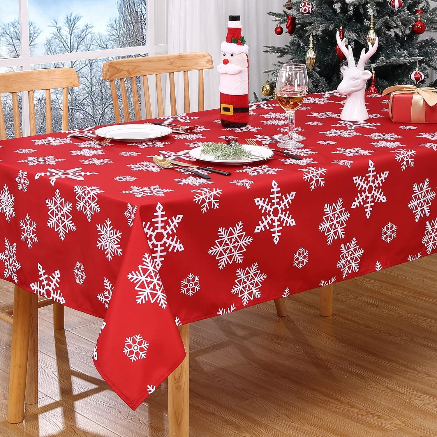 CAROMIO Red Snowflake Christmas Table Cloth Waterproof Wipeable Polyester Table