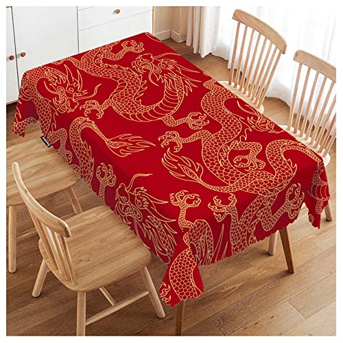 Swono Dragon Rectangle Tablecloth Traditional Flying Mascot Animal Chinese Dragons Red Durable Table Cloth Dining Table Cover for Home Kitchen Restaurant Party Buffet Picnic, 50x72 Inch