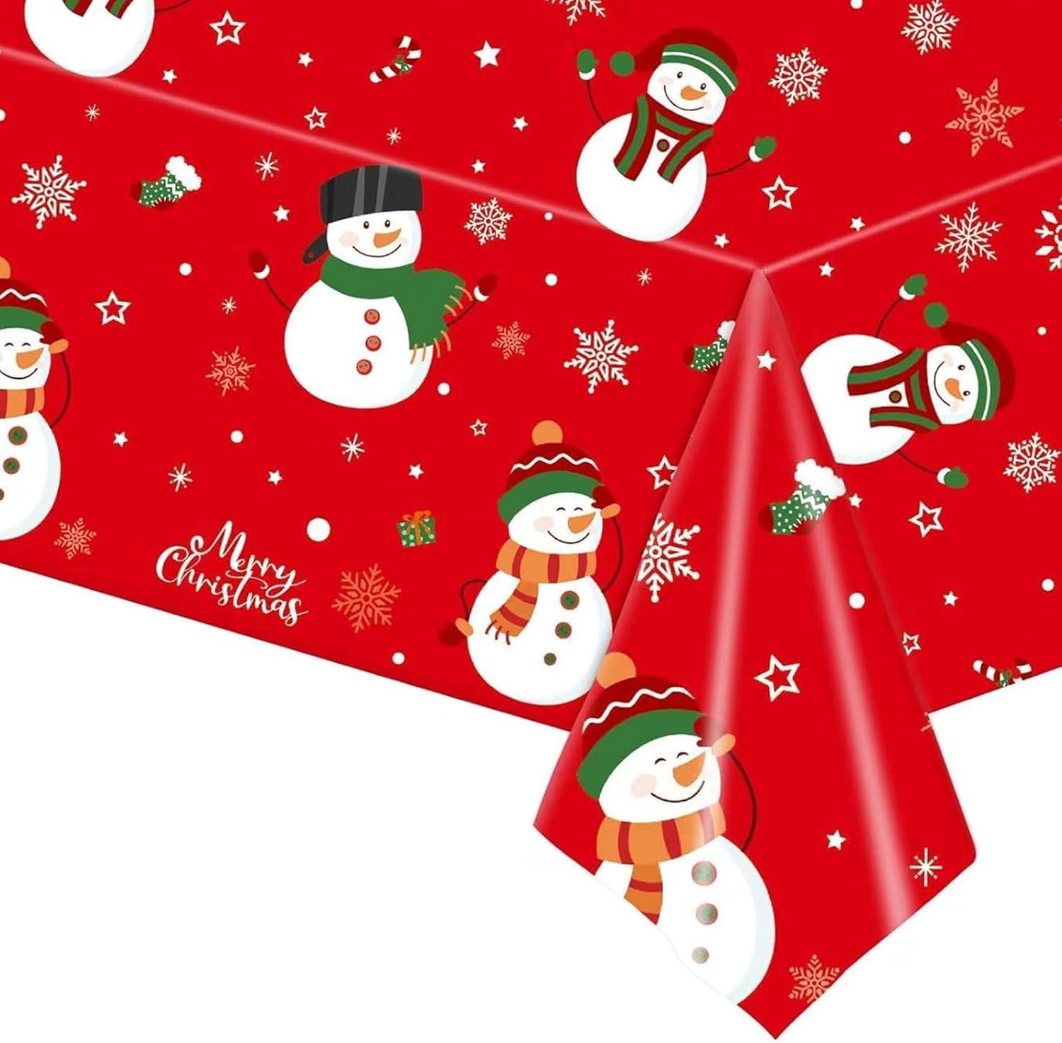 Christmas Red Table Cloth, Christmas Snowman Table Cloth, 137x274cm Rectangle L