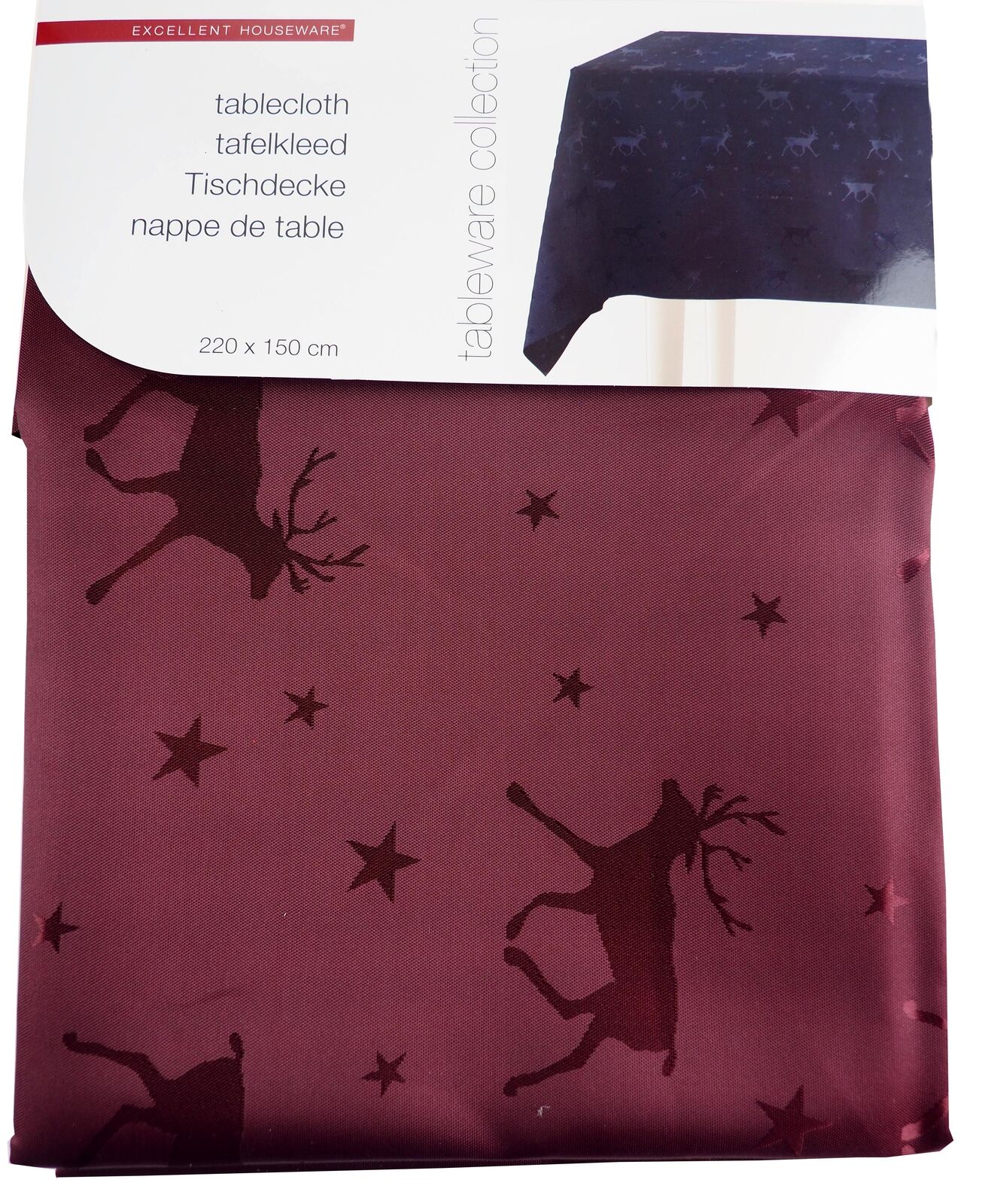 Wine Red Reindeer Christmas Table Cloth Cover - 220 x 150 cm