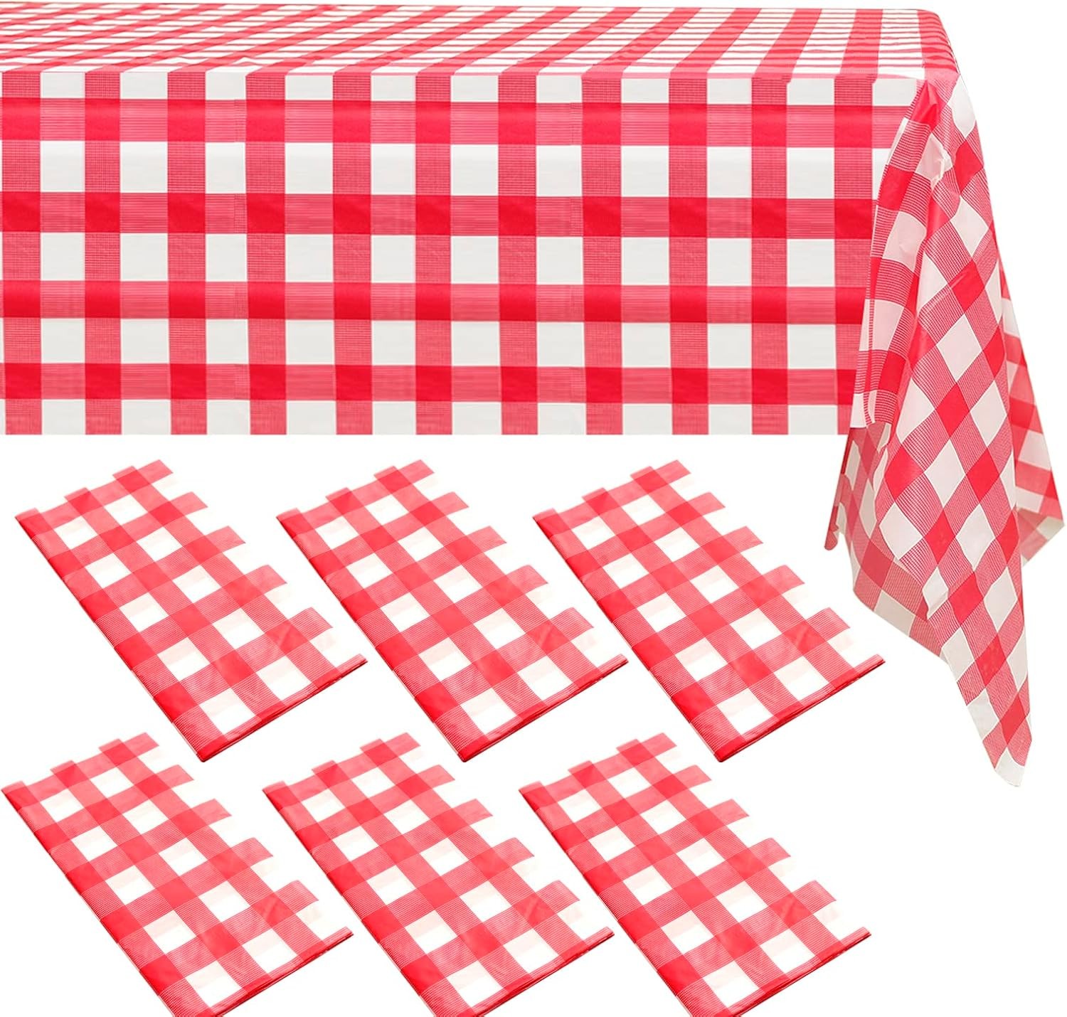 6 Packs Red Gingham Checkered Table Cloth Party | 54x108 inch | Red Plastic Dis
