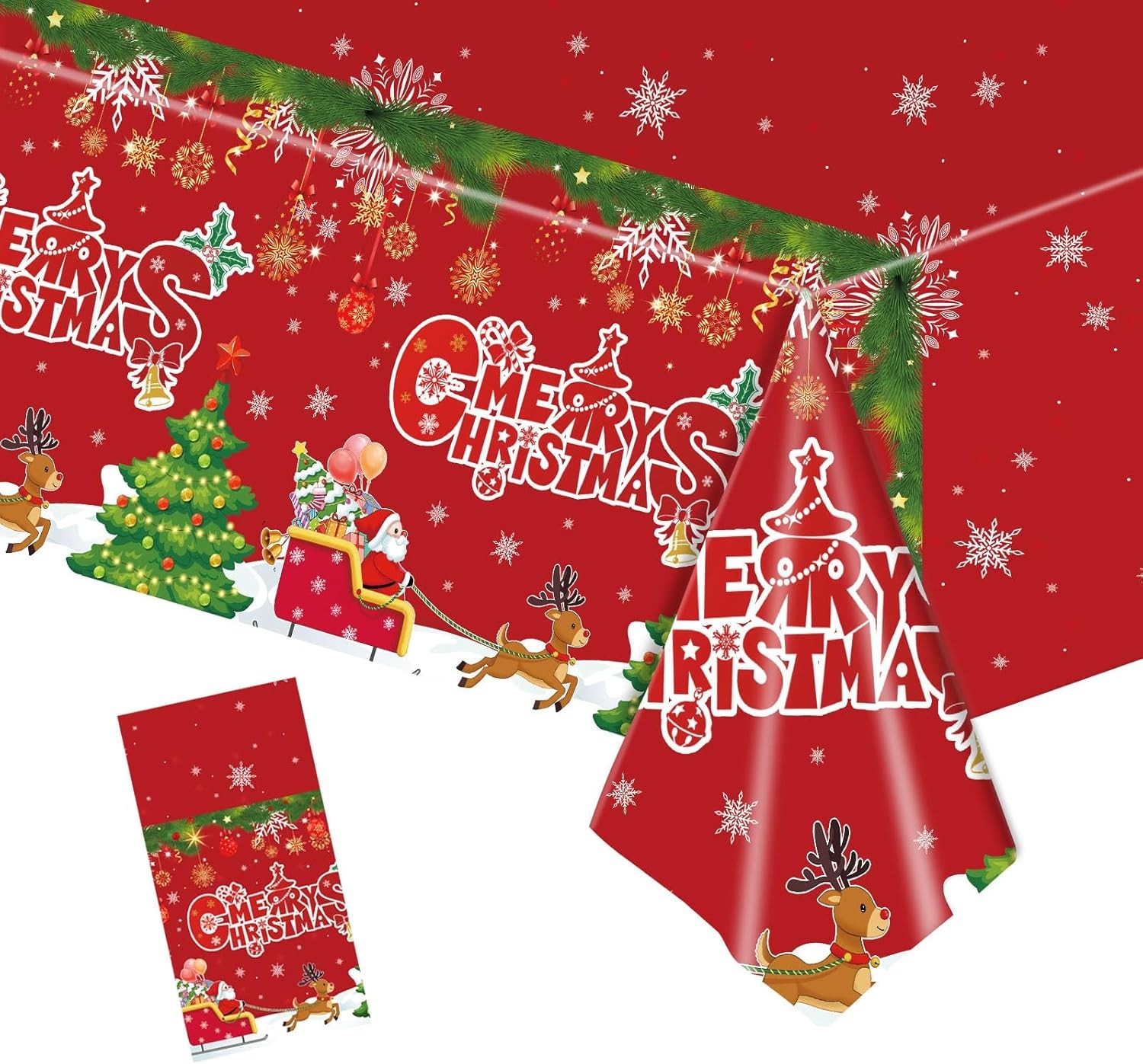 MOMAHUA 2Pcs Christmas Party Tablecloths,137x274cm Shiny Red Green Xmas Table Cloth for Winter Decorations,Plastic Reusable Rectangle Table Cover,Shiny Christmas Themed Decors for Xmas Party Supplies