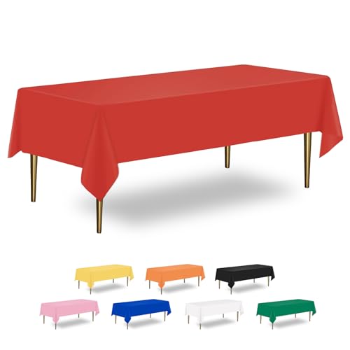 XHDA 6 Pack Red Party Table Cloth 54" x 108", Plastic Table Cloth Wipeable, Rectangular Waterproof Party Tablecloth for Kids Party Birthday Festive Party (Red)