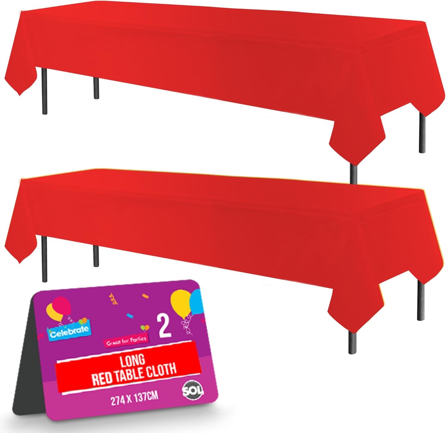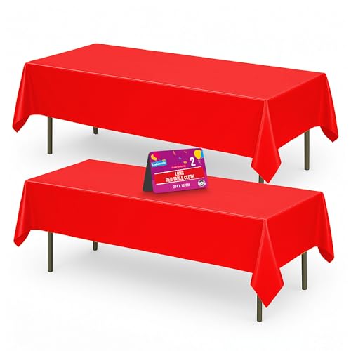 SOL 2pk Long Red Table Cloth Party 274x137cm Rectangle Plastic Cover Disposable Tablecloths for Parties - Spill Protection - Christmas Decorations New Years Eve 2026 Birthdays Weddings, Buffets
