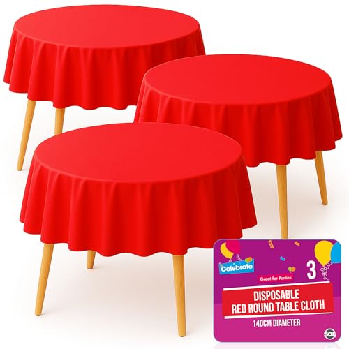 SOL 3pk Red Round Table Cloth Disposable 140cm Party Tablecloths for Circular Table Cloth Cover - Durable Spill Protection - Christmas Decorations New Years Eve 2026 Birthday Supplies Weddings