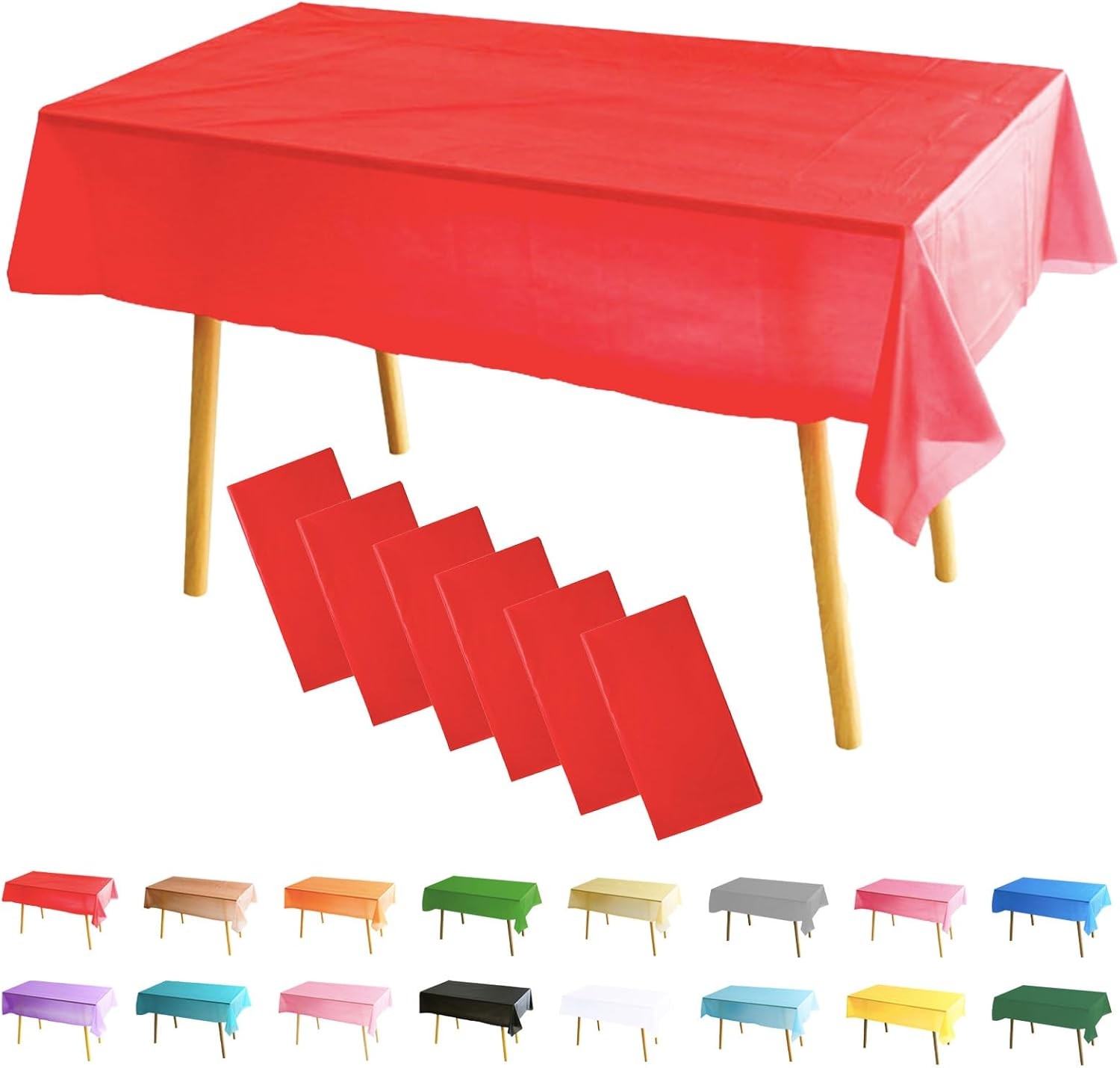 6 Pack Red Table Cloth Party Tablecloths, 137x274cm Rectangle Table Covers, Lar