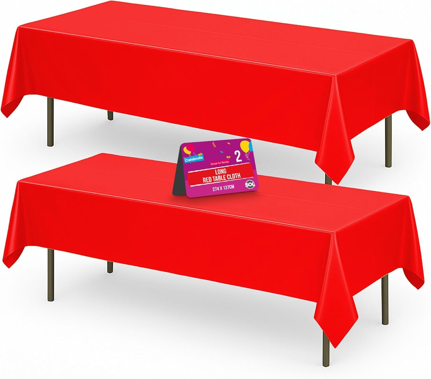 SOL 2pk Long Red Table Cloth Party 274x137cm Plastic Cover Disposable Tableclot