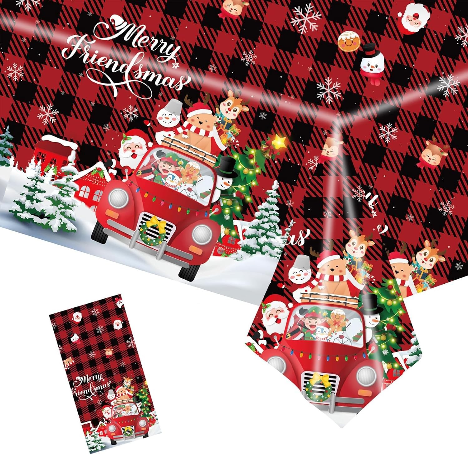 POPOYU Christmas Tablecloth,137x274cm Large Xmas Car Red Checkered Table Cloth,
