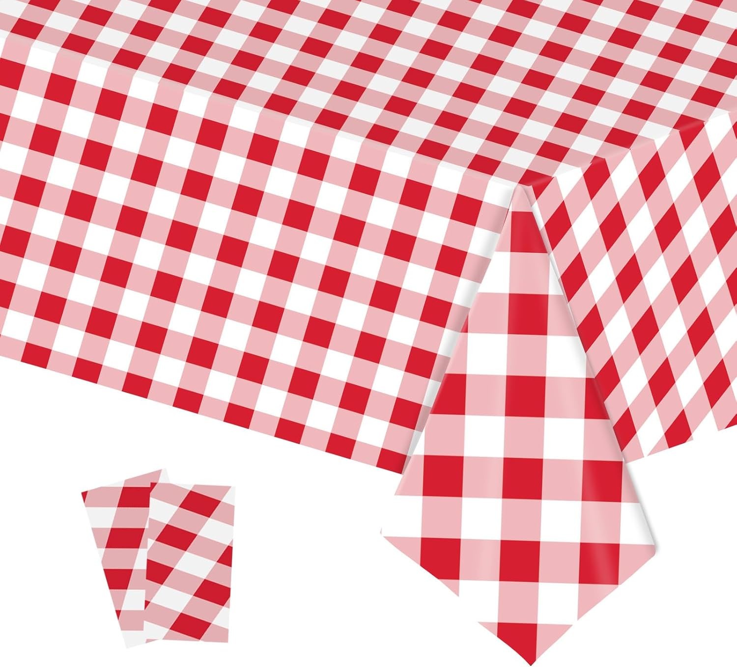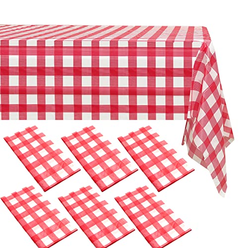 6 Packs Red Gingham Checkered Table Cloth Party | 54x108 inch | Red Plastic Disposable Table Cover Party | White Plastic Tablecloth | Party Table Clothes for Parties BBQ Picnic Birthday Wedding