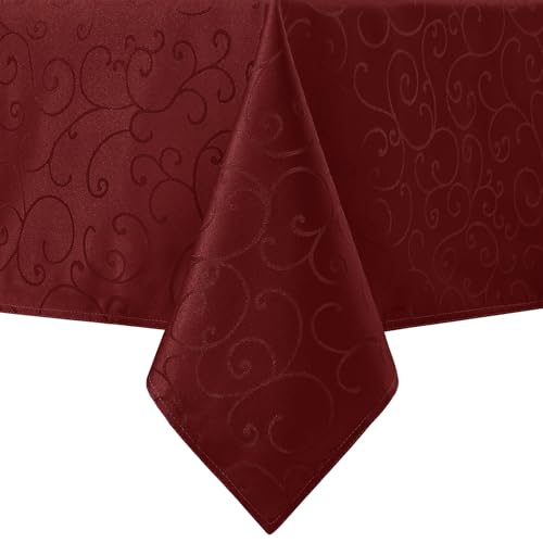 Romanstile Red Christmas Table Cloth Rectangular 140x200 cm,Elegant Jacquard Damask,Wipeable & Water-Repellent,Xmas Tablecloth for Holiday Meals,New Year Dinner,Festive Dining Table Decor,Gift idea