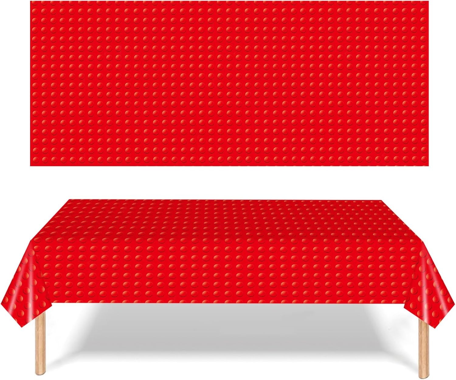 POPOYU 2Pcs Party Tablecloth,Red Building Blocks Table Cloth,137x274cm Building