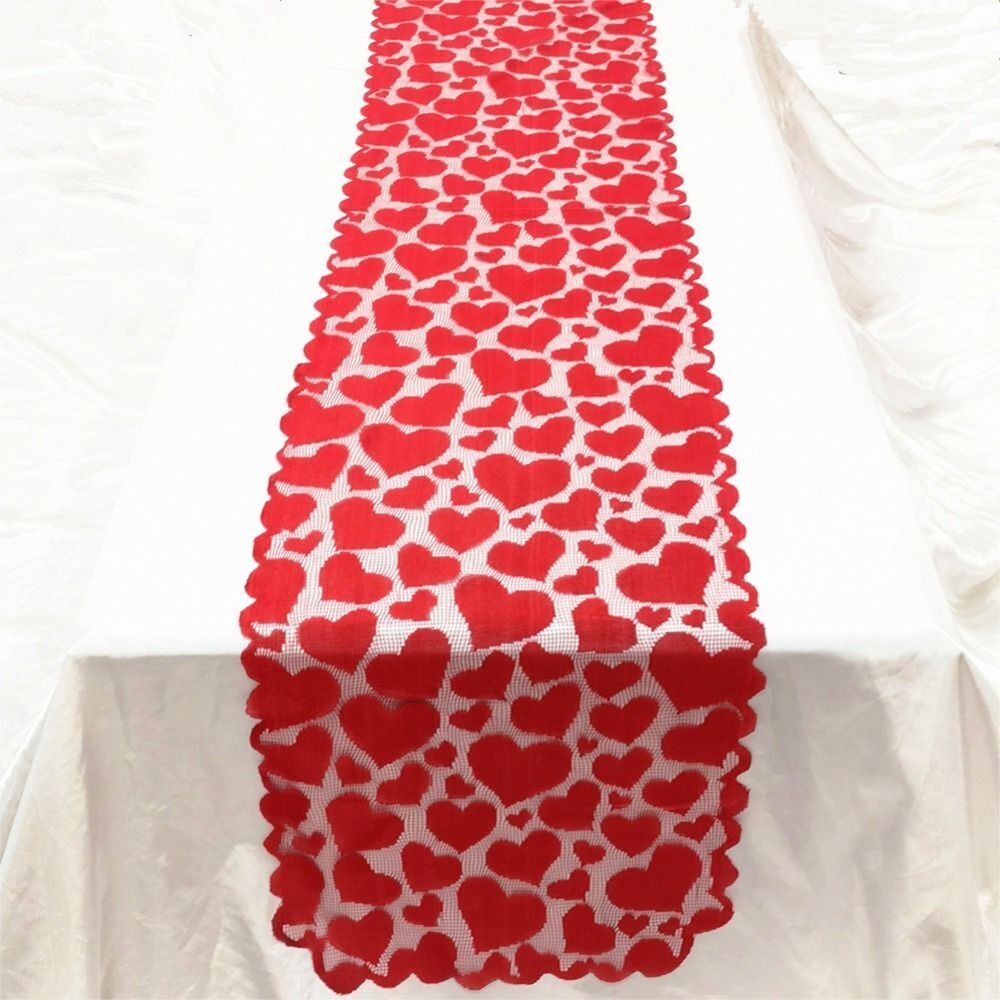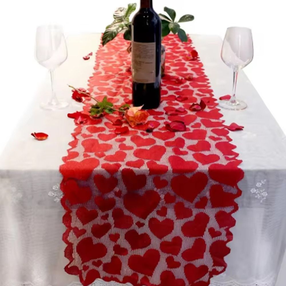 Valentines Day Red Heart Table Runner Lace Tablecloth Table Decoration