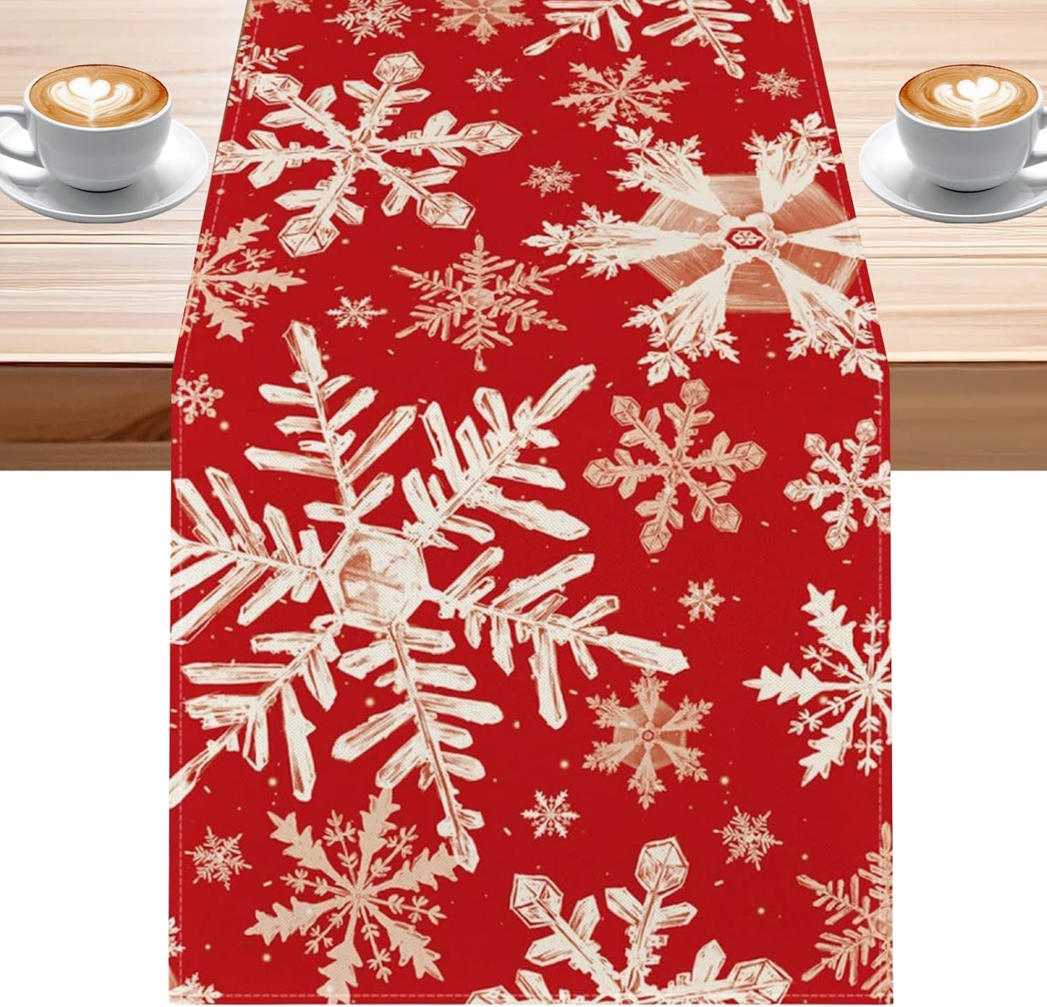 Winter Snowflake Print Xmas Christmas Table Runner, Red Table Runner Decoration