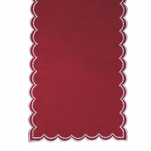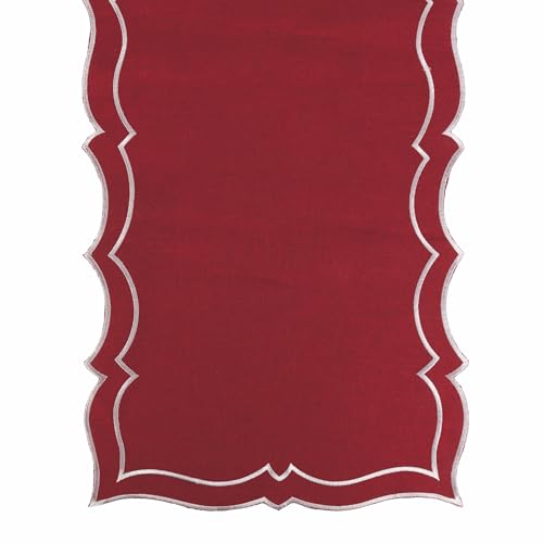 Red Table Runner 40 x 173 cm Polyester, Silver Scalloped Edge, XMas