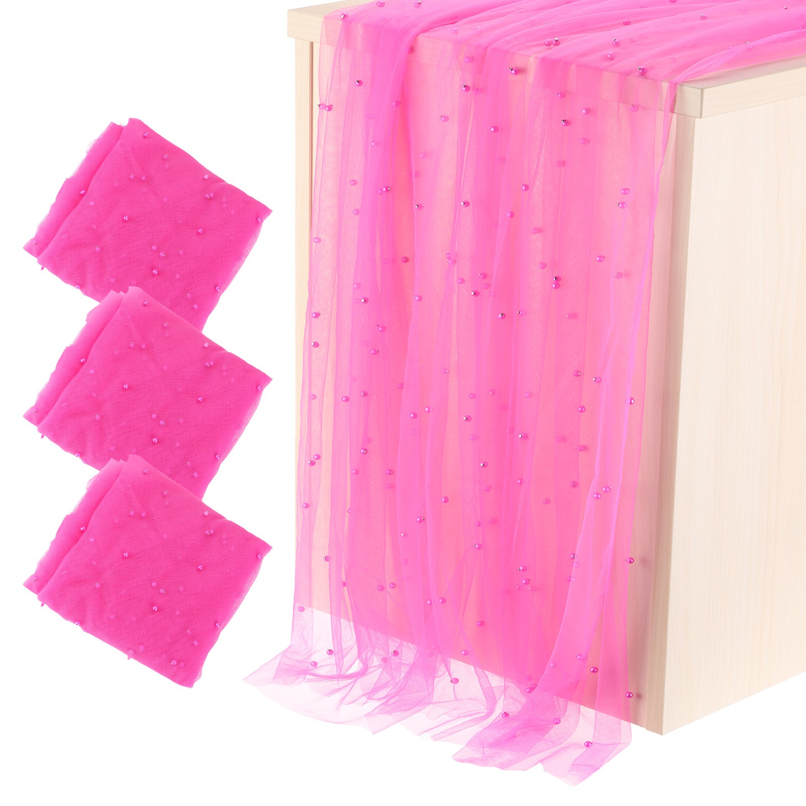 3Pcs Rose Red Table Runner 63 x 120 Inch Pearl Table Cloth Wedding Decor