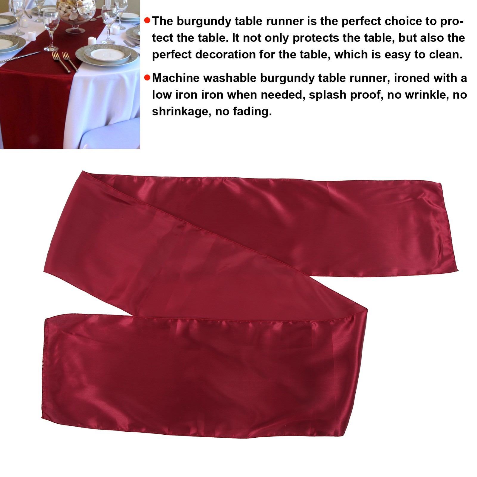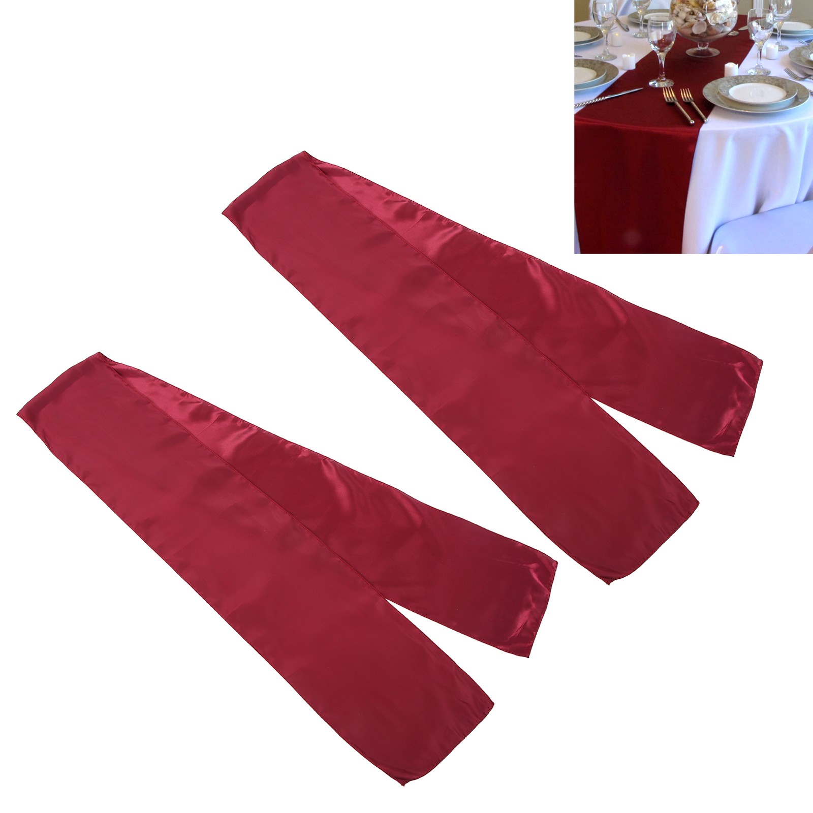 12 Pcs Wine Red Satin Table Runner 12" x 108" Romantic Silk Table Runner