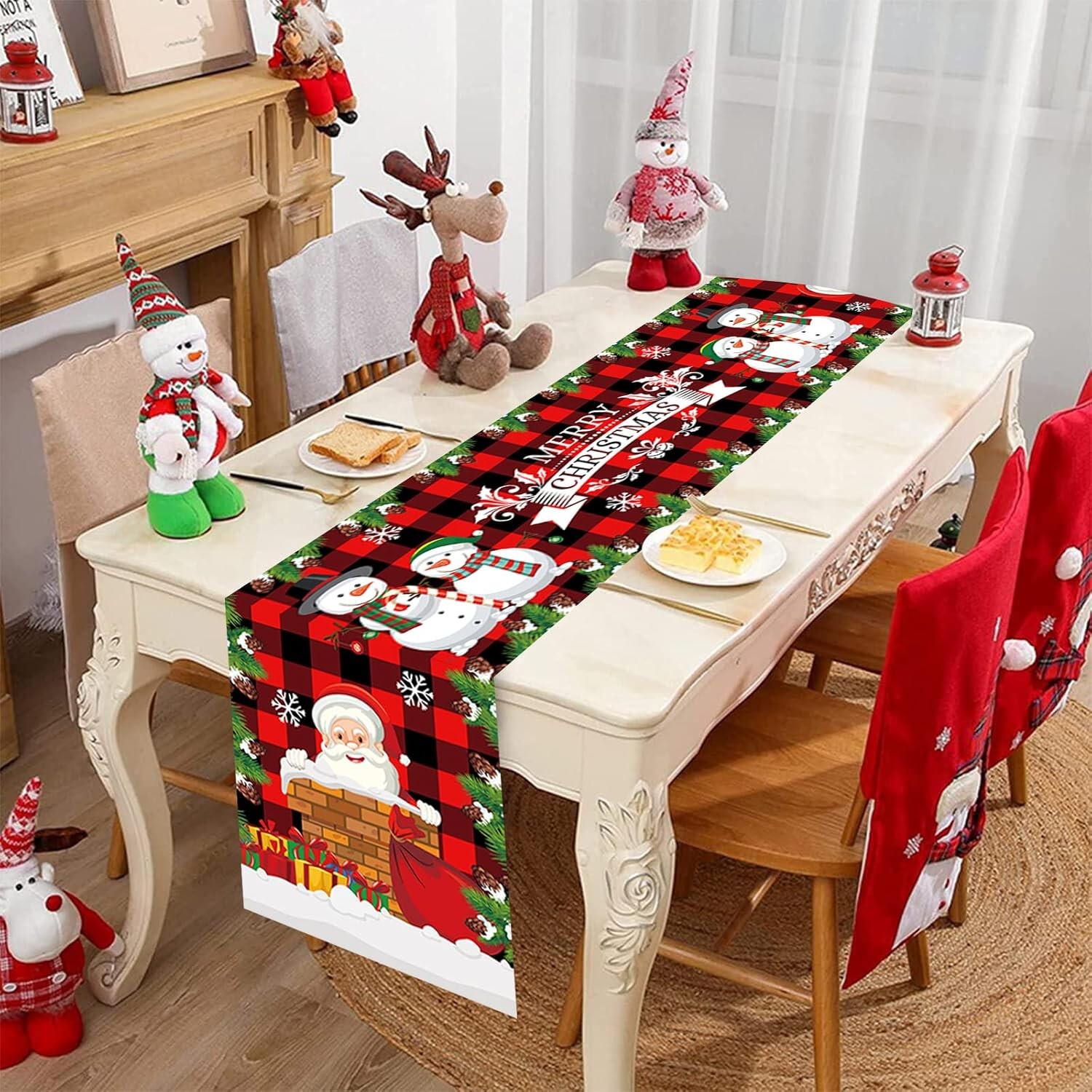 BESPORTBLE Christmas Faceless Doll Tablecloth Decor Red Table Runner Xmas Tablecloth for Dining Tabletop Ornament Holiday Decoration