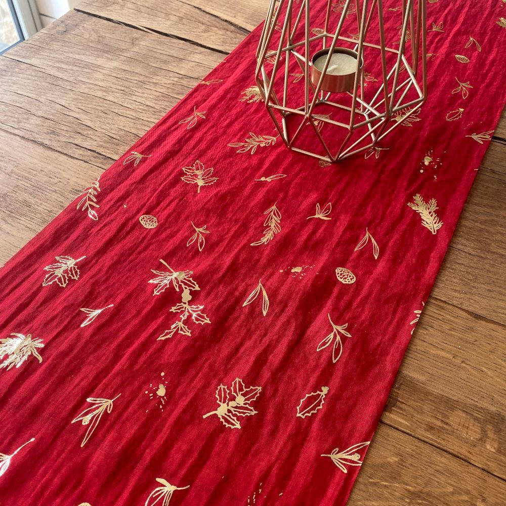 Red Gold Muslin Table Runner | Vine Flowers Party Decoration 28cm x 3m