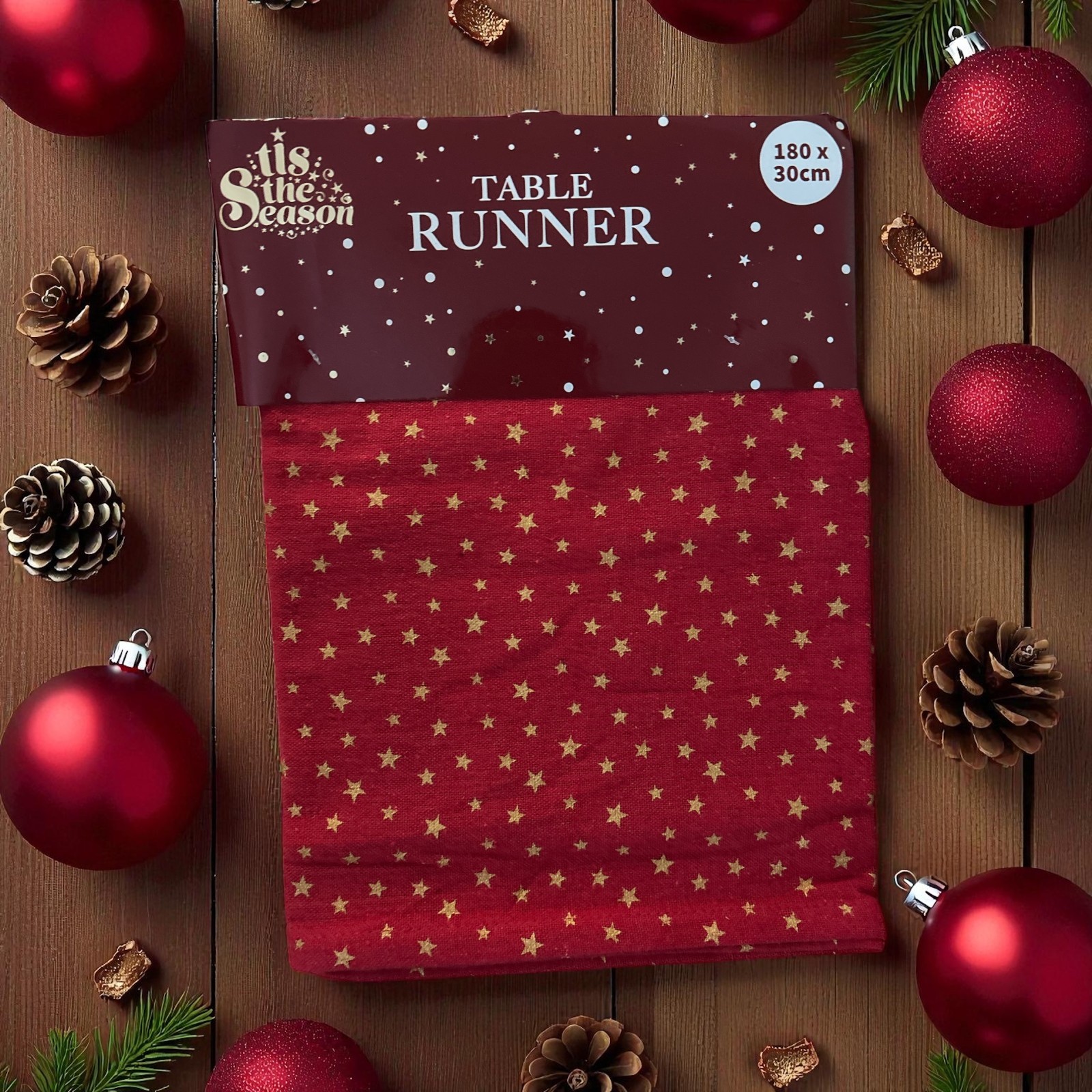 red christmas table runner fabric red with gold stars 180 x 30 cm NEW