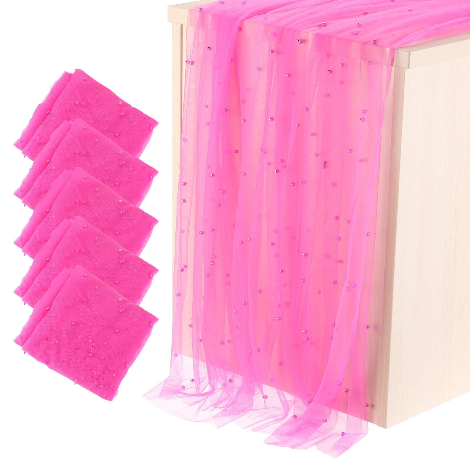 5Pcs Rose Red Table Runner 63 x 120 Inch Pearl Table Cloth Wedding Decor