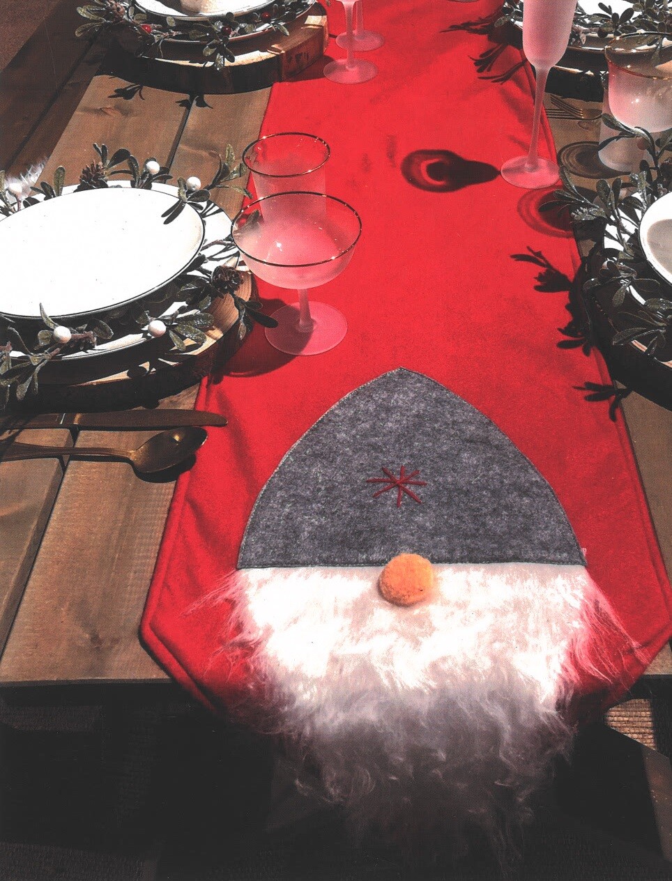 Red Felt Table Runner Christmas Table Runner With Gonk 180 cm x 35 cm