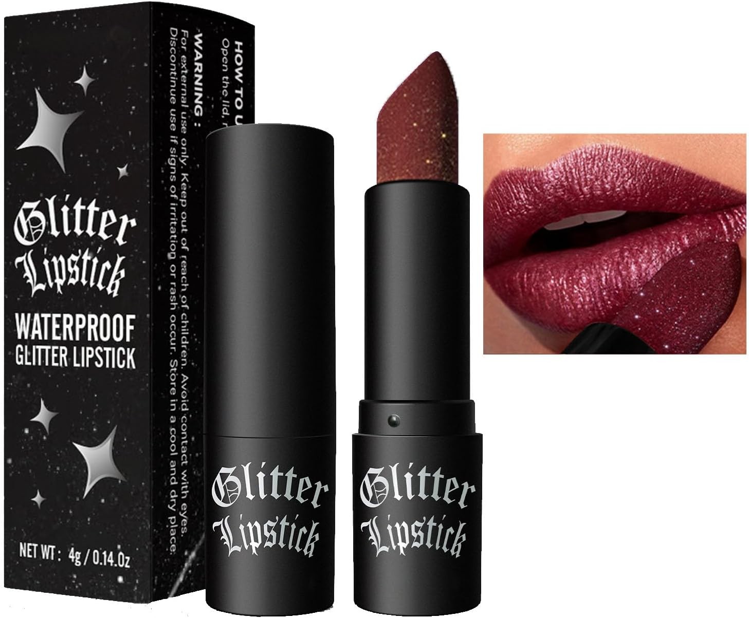 Diamond Glitter Lipstick - Moisture Tinted Lip Balm, Dark Red High Shine Gloss