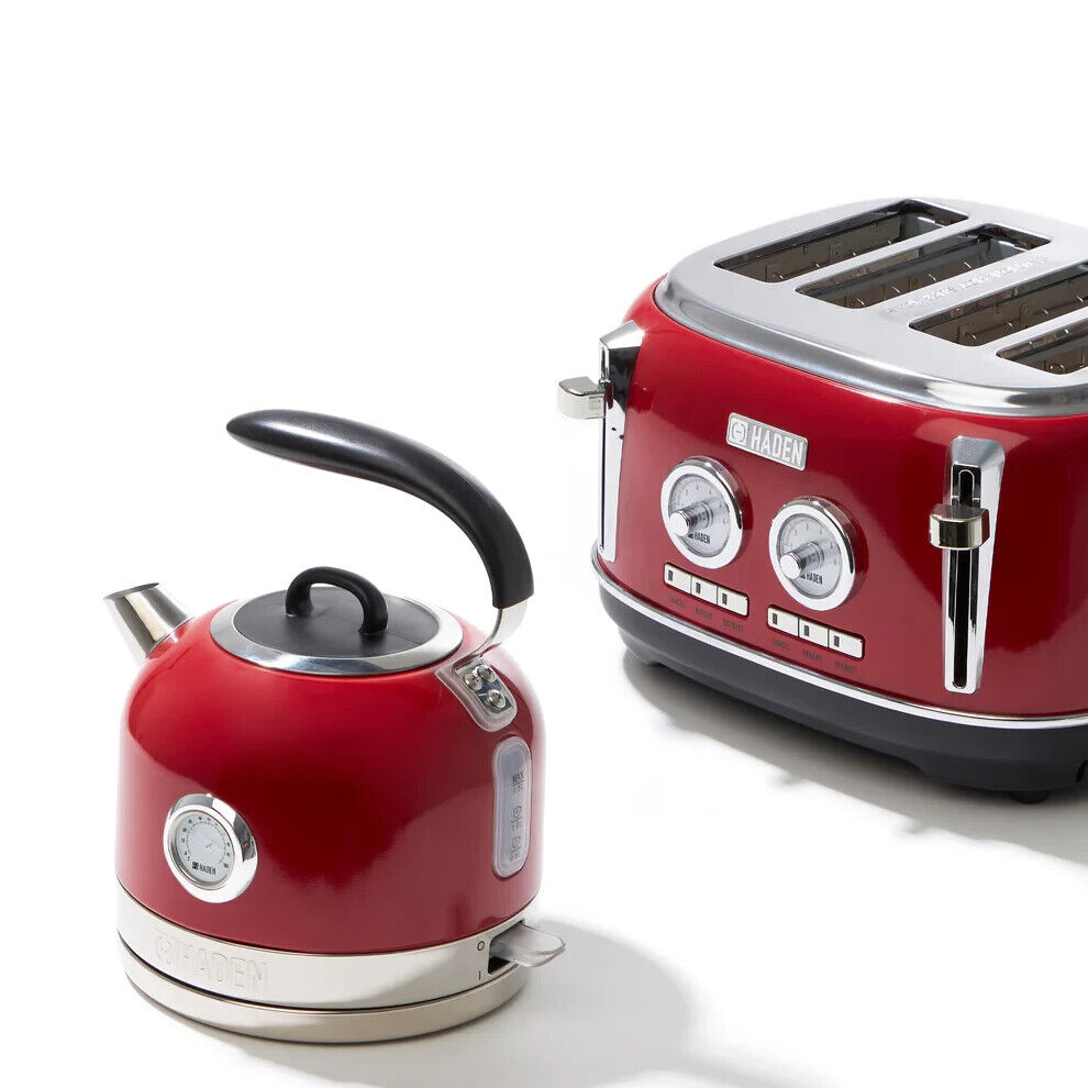 Haden Jersey Red 1.5L Fast Boil BPA Free Kettle & 4 Slice Wide Slot Toaster Set