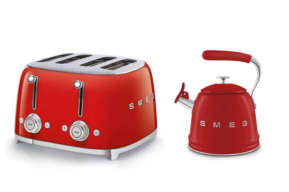 Smeg 0.8L Kettle & 4 Slice Toaster Twin Pack in Red