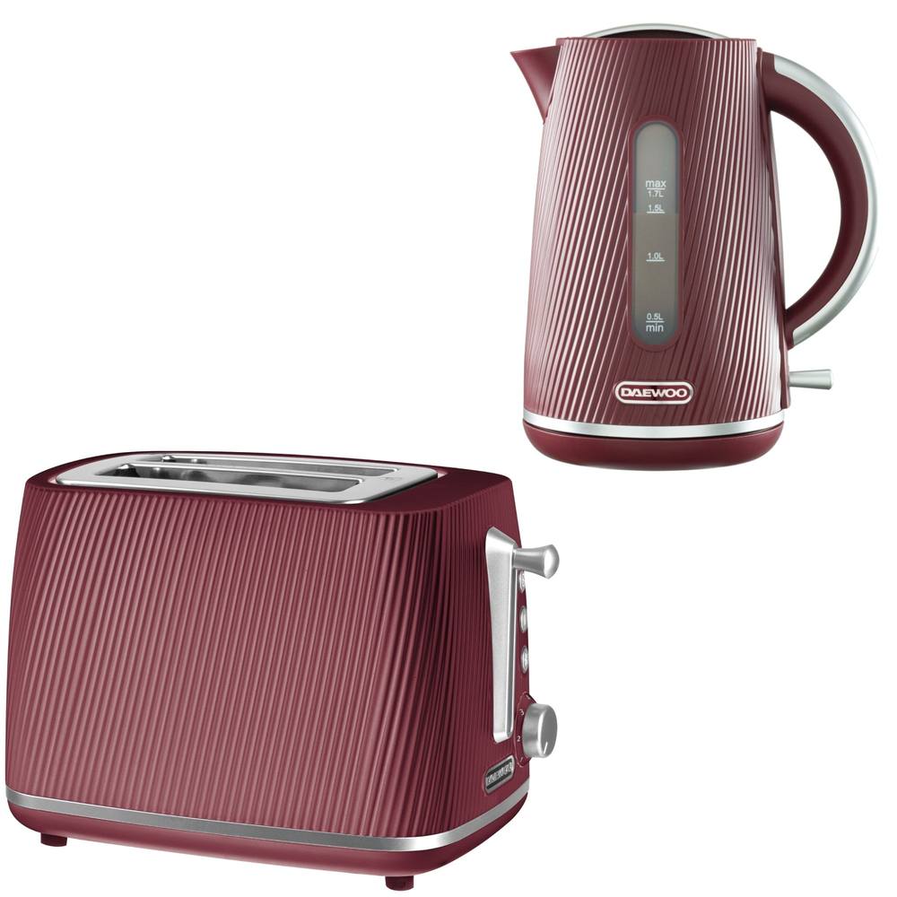 Daewoo Cascade Ruby Red 1.7 L Kettle & 2 Slice Toaster Set