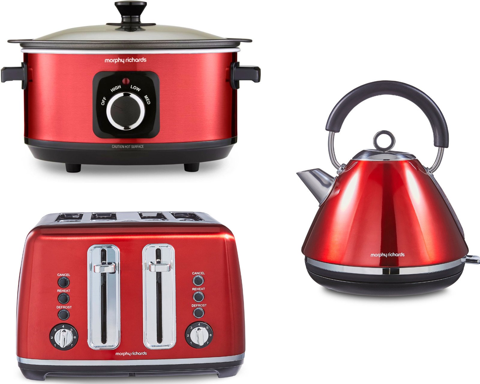 Morphy Richards Accents Red Kettle 4 Slice Toaster & 3.5 Slow Cooker Kitchen Set