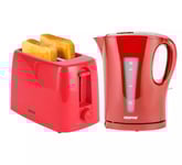 2200W 1.7L Electric Kettle & 650W 2 Slice Bread Toaster Kitchen Combo Set Red