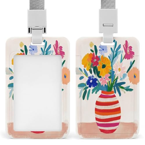Jubonexis Red-Striped Vase Colorful Flowers ID Badge Holder Retractable Clip Card Holder Card Protector Name Badge Name Tag for Work Office Doctor Nurse