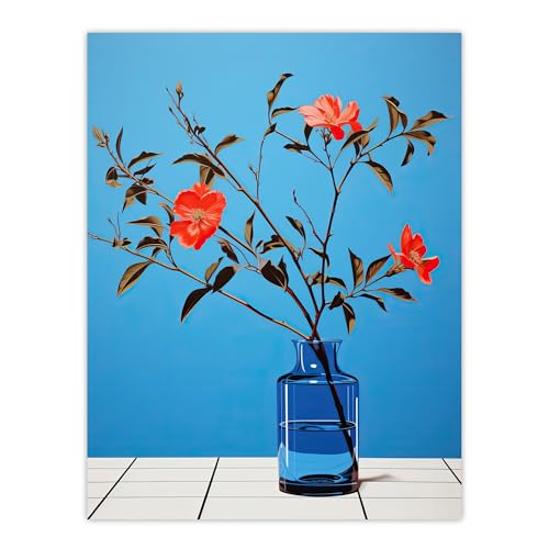Wee Blue Coo Elegant Simplicity Red Flowers Blue Vase Large Wall Art Poster Print Thick Paper 18X24 Inch
