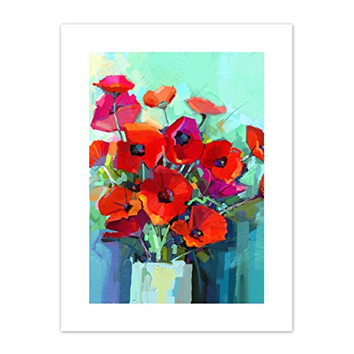 Flowers Red Bouquet Vase Art Print Poster Wall Decor 12X16 Inch