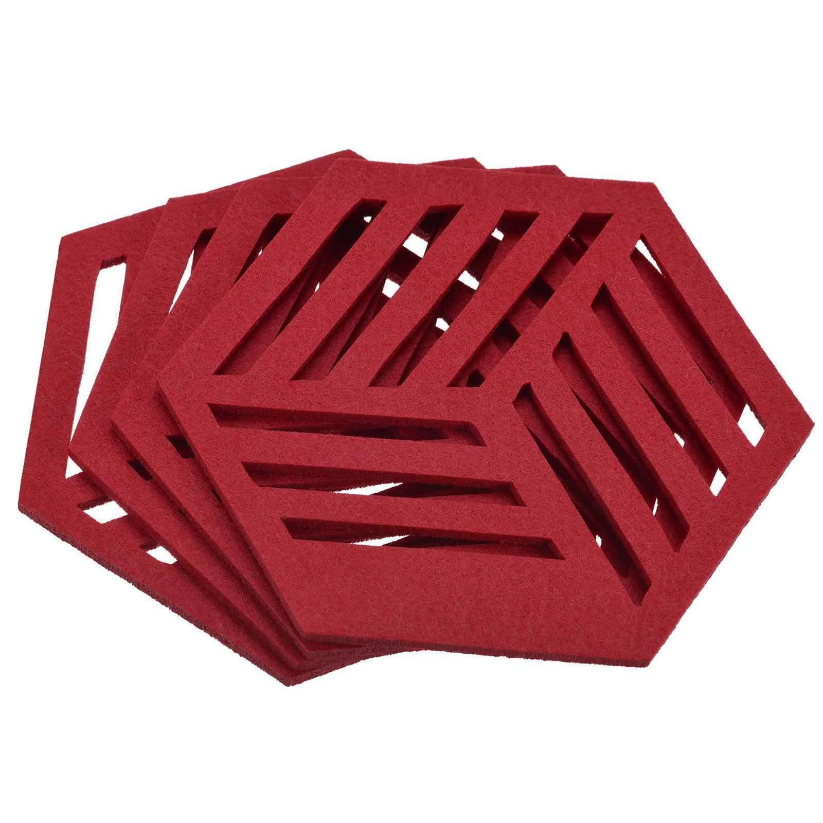 Felt Coasters, 4pcs Hexagon Mat Pad Coaster for Drink Cup Pot Bowl Vase, Red