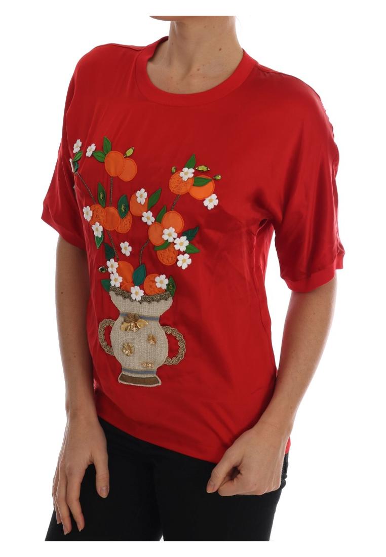 Dolce & Gabbana WoMens Red Silk Orange Vase Crystal Top - Size EU 42 (Womens)