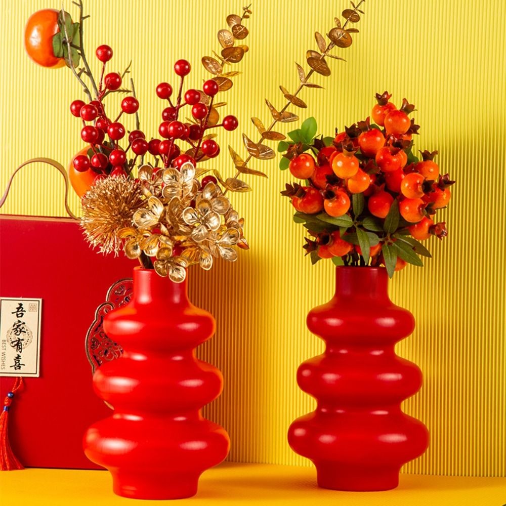 Imitation Ceramic New Year Flower Vase Red Flowerpot Home Decoration