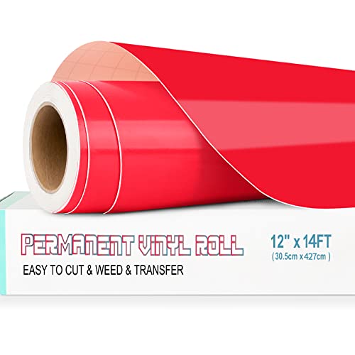 Permanent Vinyl for Cricut, 12" x4ft Red Self Adhesive Vinyl Roll for Cricut and Silhouette Cameo, Red Vinyl for Party Decoration, Window Stickers, Home Decor