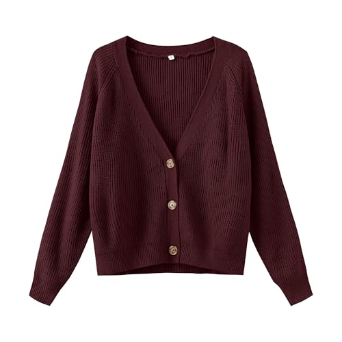 GRACE KARIN Womens Casual Cardigan Long Raglan Sleeve Crew Neck Knitwear Summer Sweater Cardigans Dark Red M