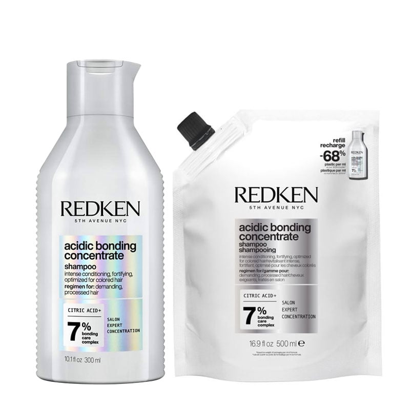 Redken Acidic Bonding Concentrate for Women (Shampoo 300ml, Refill Shampoo 500ml
