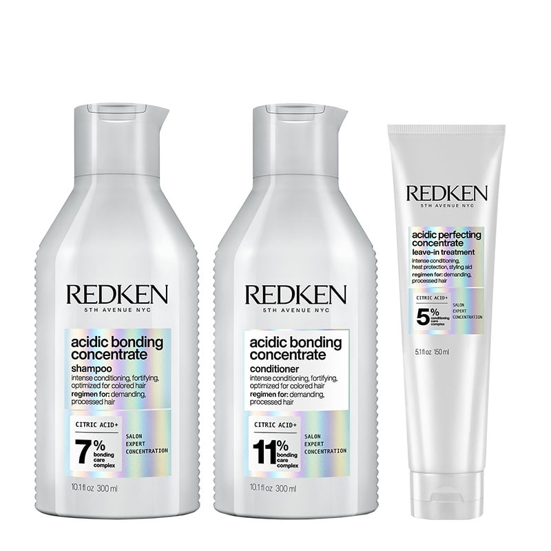 Redken Womens Acidic Bonding Concentrate Trio: Bond-Repair Shampoo 300ml, Conditioner & Leave-In 150ml - One Size