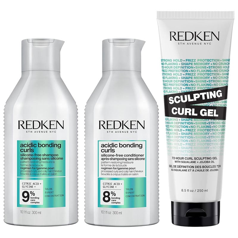Redken Unisex Acidic Bonding Curls Shampoo 300ml, Conditioner & Sculpting Curl Gel 250ml Pack - One Size