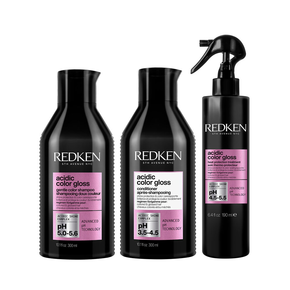 Redken Acidic Color Gloss Shampoo, Conditioner 300ml and Heat Protection Treatment 190ml Bundle