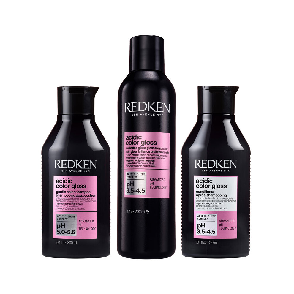 Redken Acidic Color Gloss Shampoo 300ml, Activated Glass Gloss Treatment 237ml and Conditioner 300ml