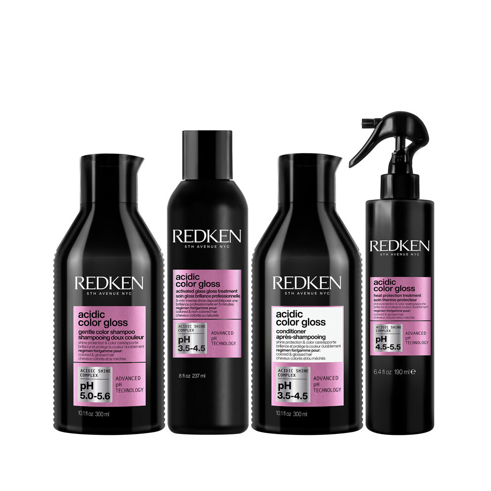 Redken Acidic Color Gloss Shampoo 300ml, Glass Gloss Treatment 237ml, Conditioner 300ml & Leave-in Treatment 190ml