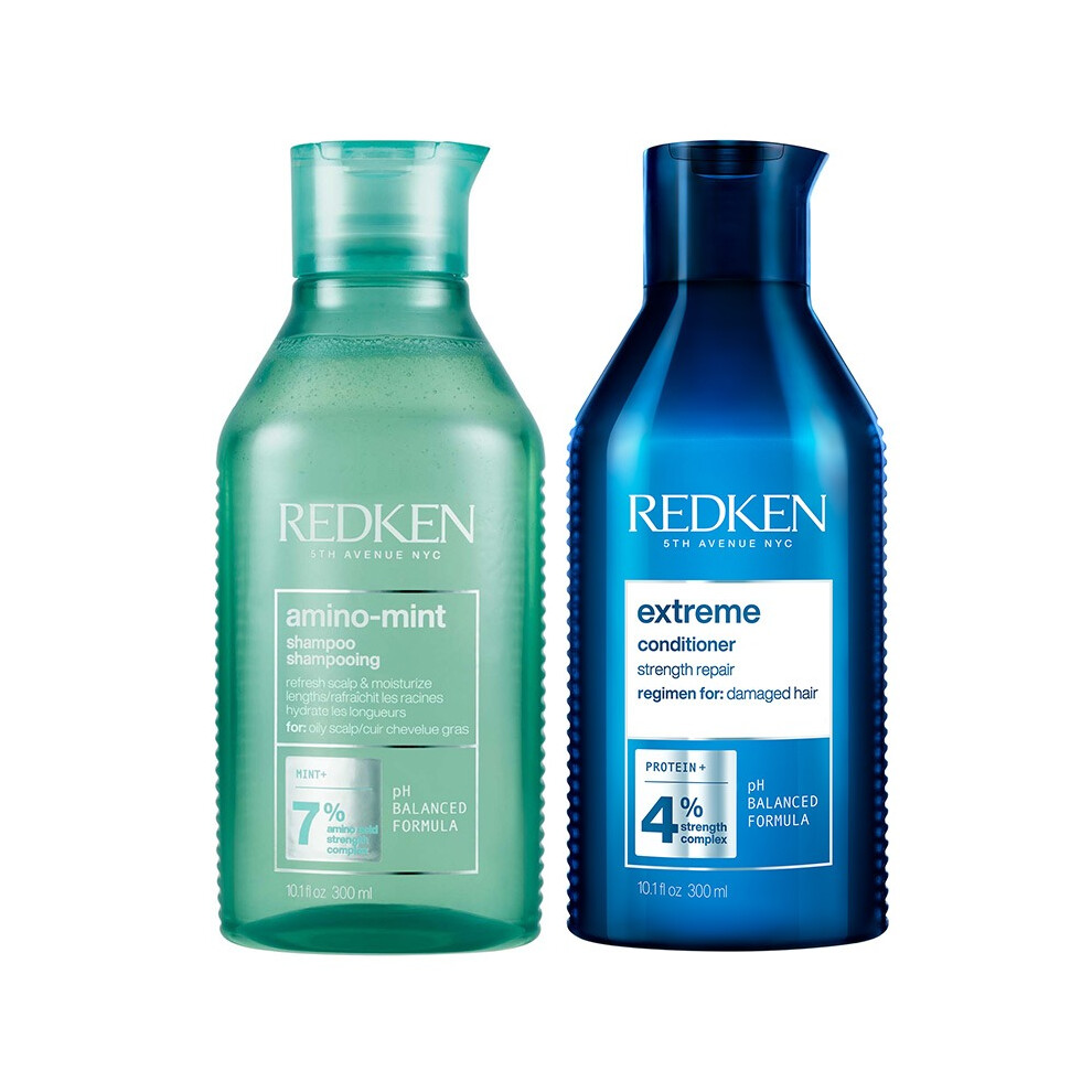 Redken Amino Mint Scalp Cleansing for Greasy Hair Shampoo and Extreme Conditioner Bundle