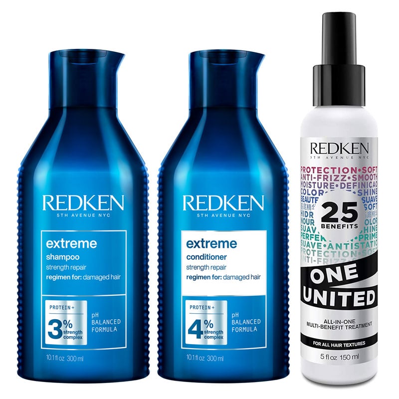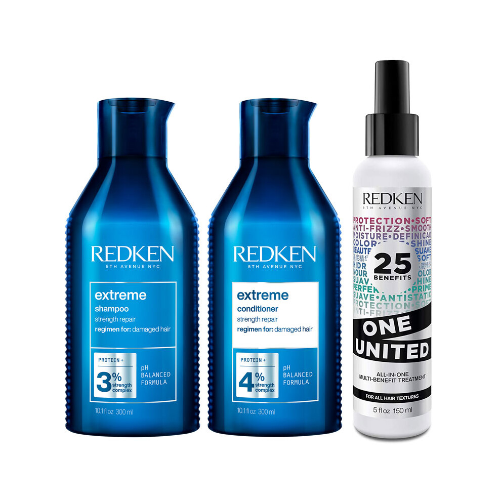 Redken Womens Extreme Trio Bundle: Shampoo 500ml, Conditioner & One United 150ml - One Size