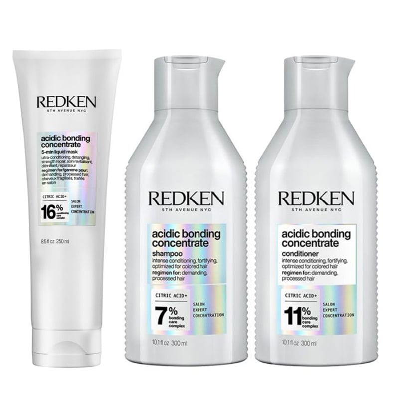 Redken Womens Acidic Bonding Concentrate Trio: Shampoo 300ml, Conditioner and 5‑Minute Liquid Mask 250ml - One Size