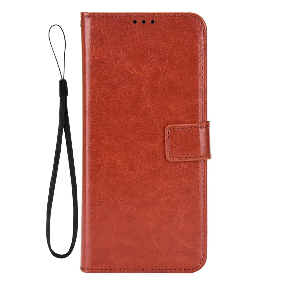 Leather Wallet Case for ZTE RedMagic 10 Air 5G, Brown PU Flip Cover with Magnetic Buckle and Card Storage